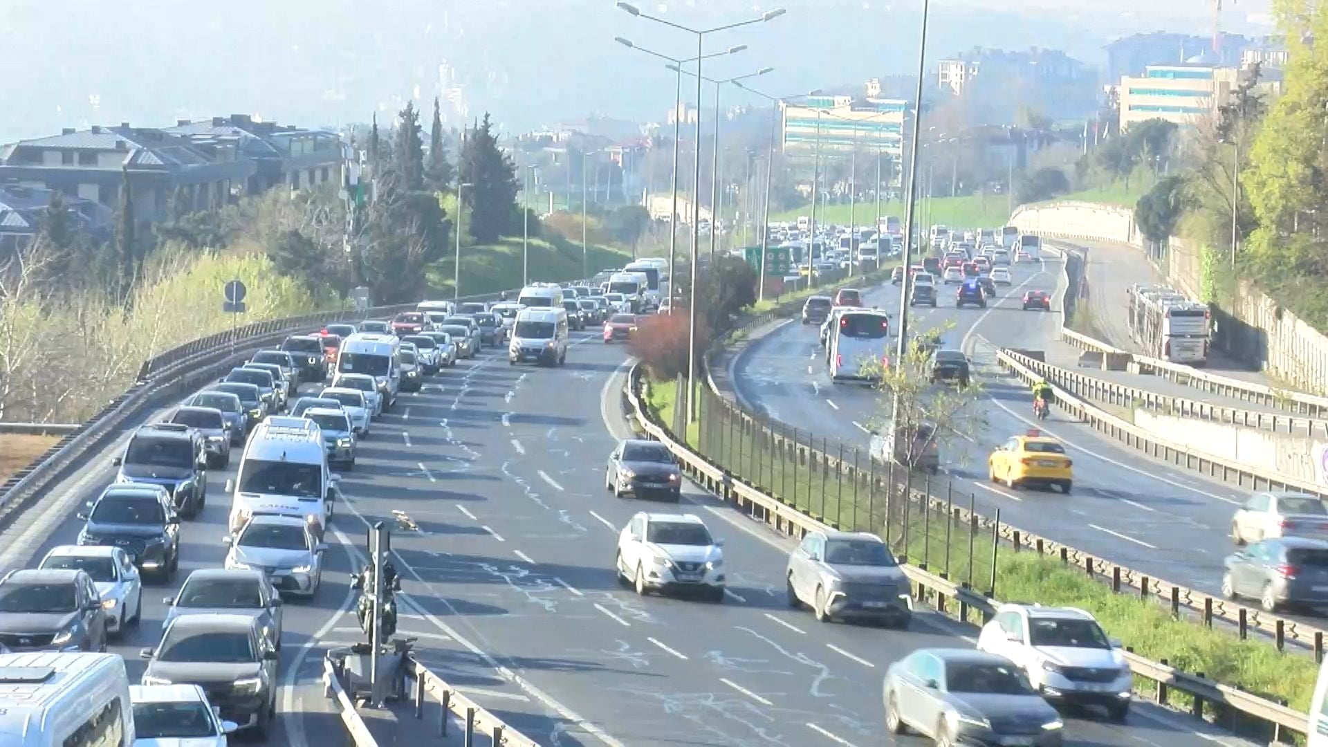 Saat 08.30 bilgilerine bakıldığında ise iki yaka ortasındaki yoğunluk farkı dikkat çekti. Avrupa Yakası’nda trafik yoğunluğu yüzde 62 olarak ölçülürken, bu oran Anadolu Yakası’nda yüzde 83‘e kadar çıkarak trafiği adeta durma noktasına getirdi.