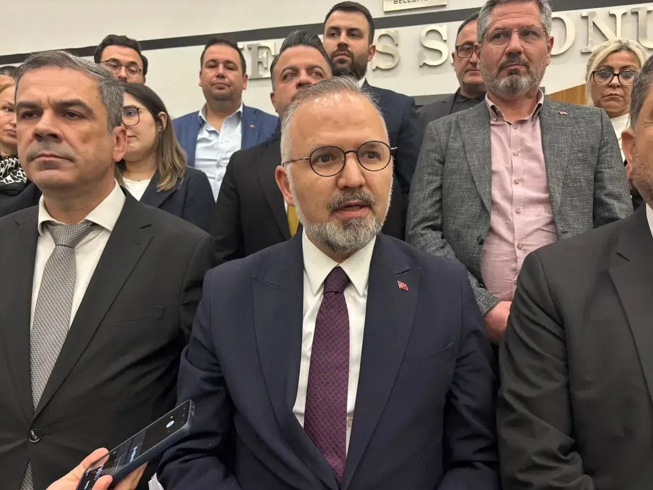Tugay’ın Meclis oturumunu kapatmasına tepki gösteren AK Parti ve Milliyetçi Hareket Partisi meclis üyeleri meclis salonu önünde basın açıklaması yaptı.