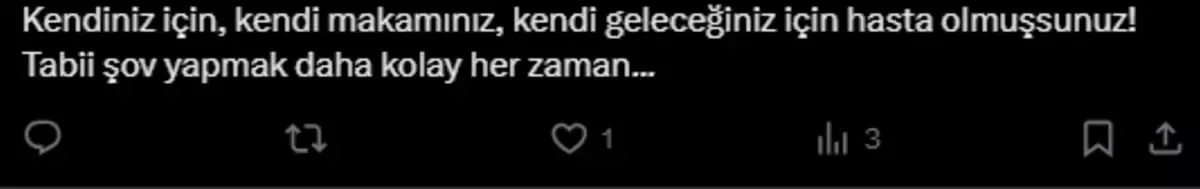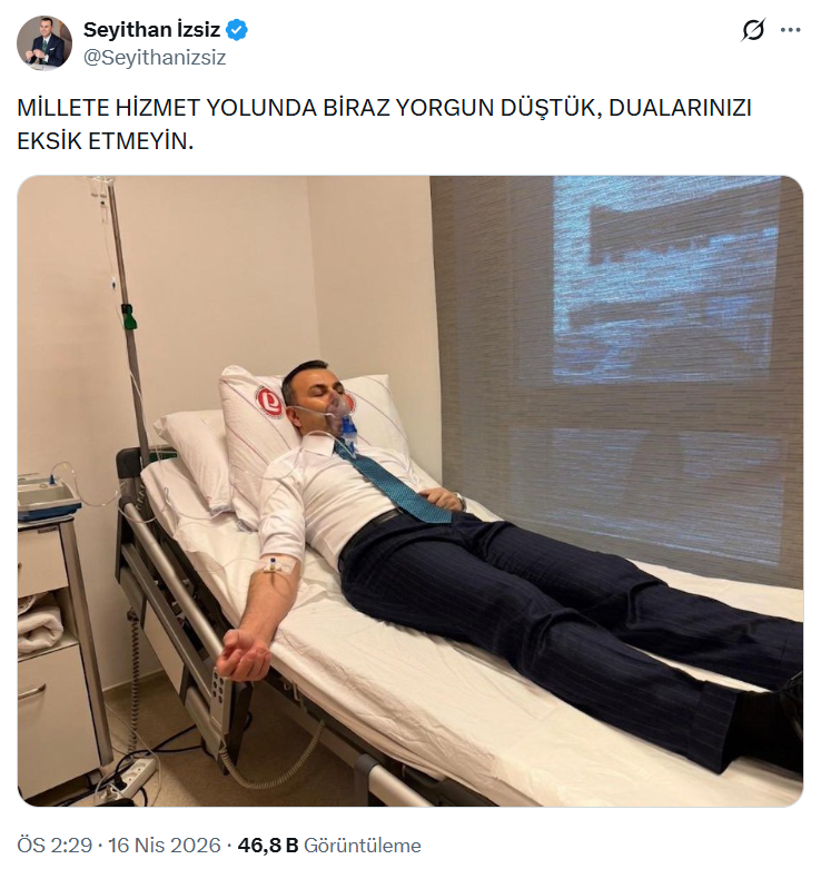 İzsiz, kelam konusu paylaşımında “Millete hizmet yolunda biraz yorgun düştük, dualarınızı eksik etmeyin.” yorumunda bulundu.