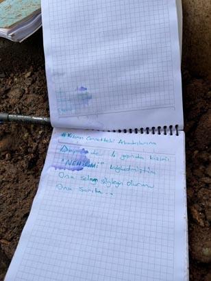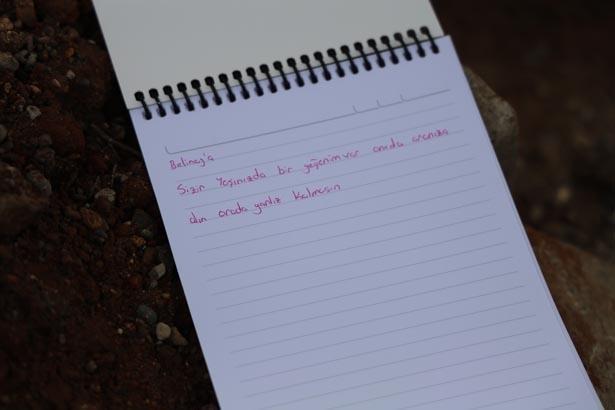 Bir öbür notu ise Kahramanmaraş merkezli 6 Şubat 2023 sarsıntılarında kızını kaybeden bir anne bıraktı. Notta, “Depremde 4 yaşında kızım Nehir’imi kaybettim. Ona selam söyleyin ona sarılın” sözleri yer aldı. (DHA)