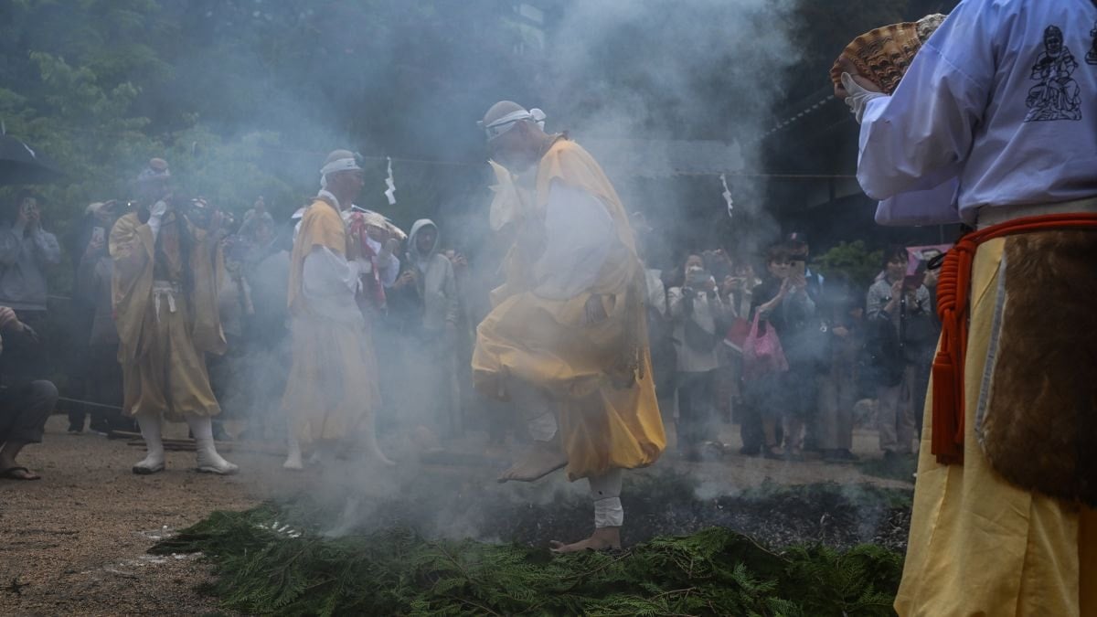 Yılda iki defa gerçekleştirilen bu klasik ritüelde, Budist keşişler ve ziyaretçiler çıplak ayakla kızgın közlerin üzerinden yürüdü.