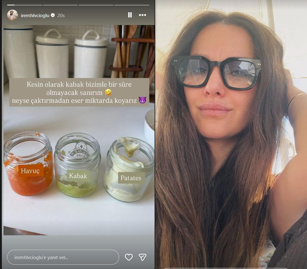 Helvacıoğlu, son olarak kızının ek besin sürecinden eğlenceli bir kare paylaştı. Havuç, kabak ve patates pürelerinin olduğu cam kavanozları fotoğraflayan ünlü oyuncu, Sora’nın kabağa olan arasını şu sözlerle özetledi: