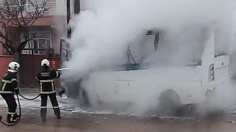 112 Acil Davet Merkezi’ne yapılan ihbar üzerine olay yerine itfaiye ve polis grupları sevk edildi. İtfaiye gruplarının müdahalesiyle yangın kısa müddette denetim altına alınarak söndürüldü. Yangının akabinde araçta soğutma çalışması yapıldı. Büyük çapta maddi hasar meydana gelen minibüs kullanılmaz hale geldi.