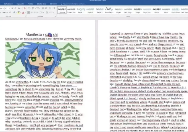 Gazeteci Çetin Aydın’ın aktardığına nazaran, saldırganın 11 Nisan tarihli notunda kan donduran ayrıntılar dikkat çekti. 14 yaşındaki saldırgan, “Bunu yazarken tarih 11 Nisan 2026. Sen bunu okuduğunda ya bir şey planlıyor olacağım, yapmış olacağım ya da yapmak üzere olacağım. Hayatım boyunca daima yalnız kaldım. Nedenini bilmiyorum, aslında çok fazla şeyim vardı. Daima beşerlerle kaynaşmaya çalıştım lakin yalnız kaldım.
